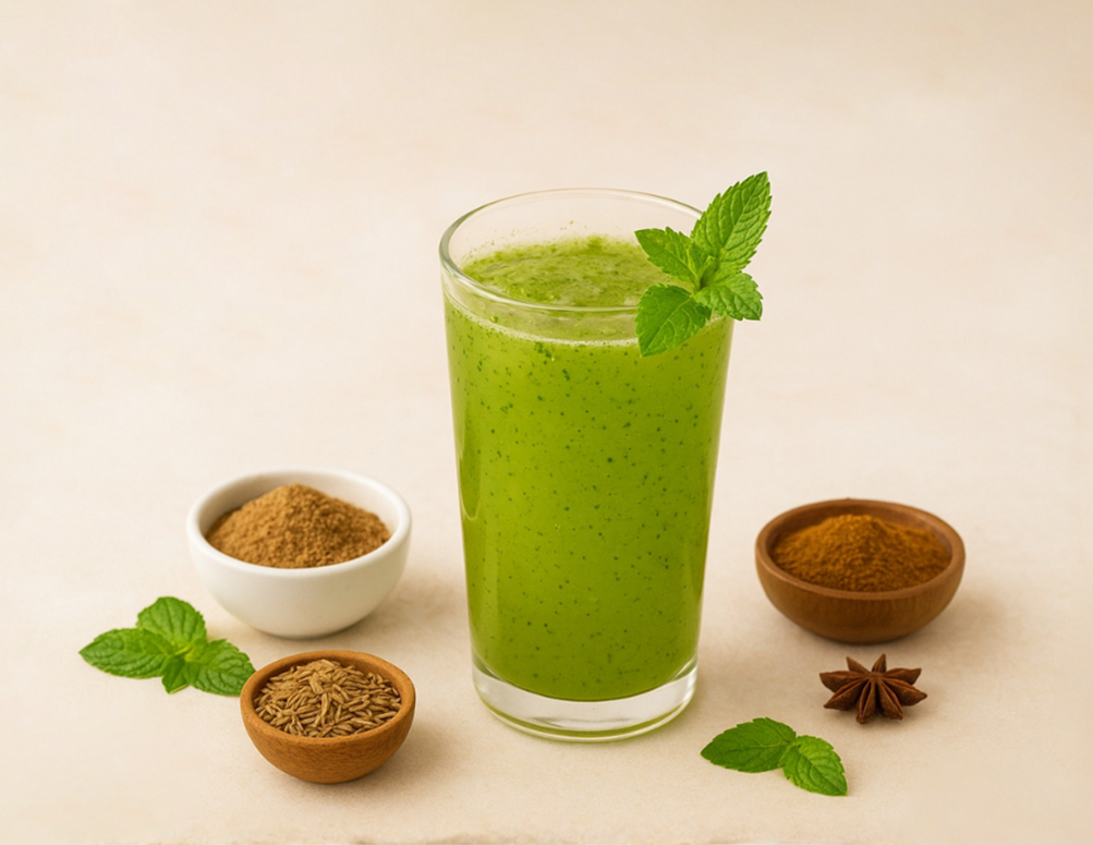 - Blend spinach, mint & Baalu Jaljira.